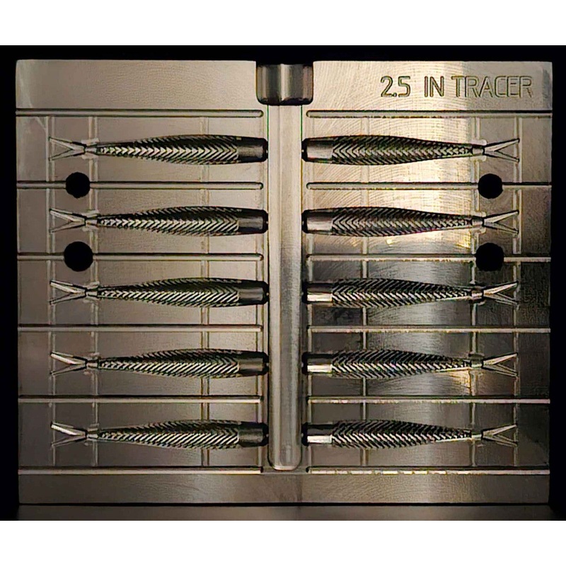 The 2.5″ Tracer Shad, featuring a 10-cavity design, is perfect for panfish anglers who utilize Strolling or Jigging techniques. Its tail action is sure to attract Crappie, Bluegills, and Sunfish. Additionally, the 2.5″ Tracer Shad is .34″ wide on top and .38″ in height from top to bottom of the belly. The 2″ Tracer Shad Tail mold can also be used with the 2.5″ Tracer Shad mold.