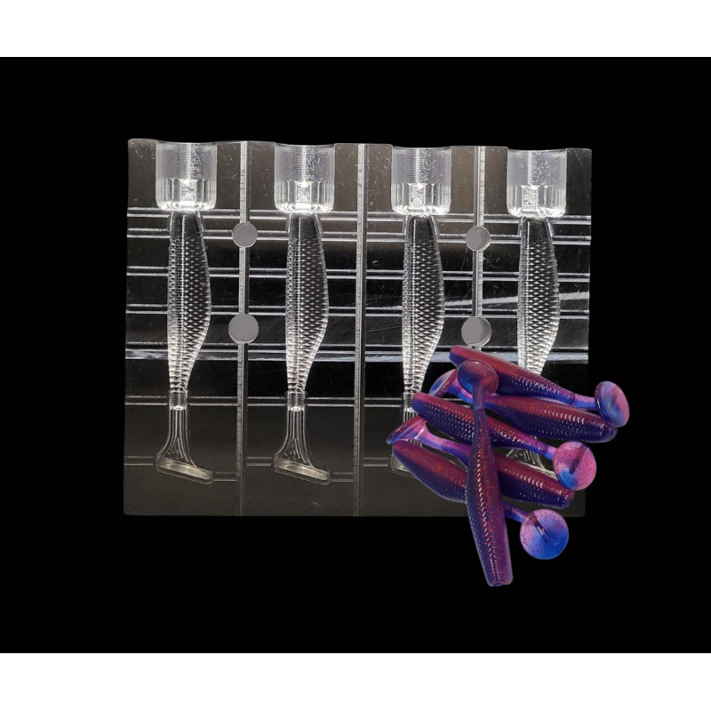 Introducing the 2.8″ RipRap Swimbait Mold. This mold is inspired by its larger counterpart, the 3.8″ RipRap, and offers exceptional swimming action in a more compact size. With individual top port injection, you can easily create laminate baits to perfectly imitate the local prey or stand out in stained water. The 4-cavity design of this mold is ideal for attracting predator fish. For even more versatility, the mold also has a 6-cavity tail mold design.