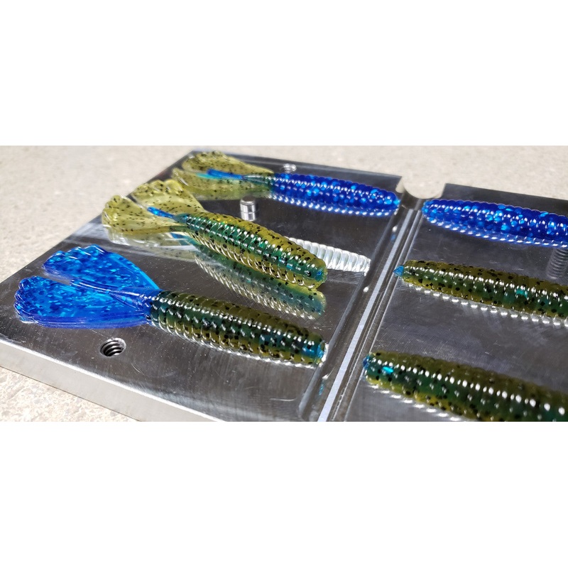 The 3.5″ Phantom Core Shot-Grub Mold features 6-cavities for creating core shots, solid colors, laminates, and tails. Measuring 3.5 inches in the mold, this product comes with three core rods and is ideal for use as a punching bait, chatter bait trailer, as well as a jig trailer. (Includes 3 Rods)