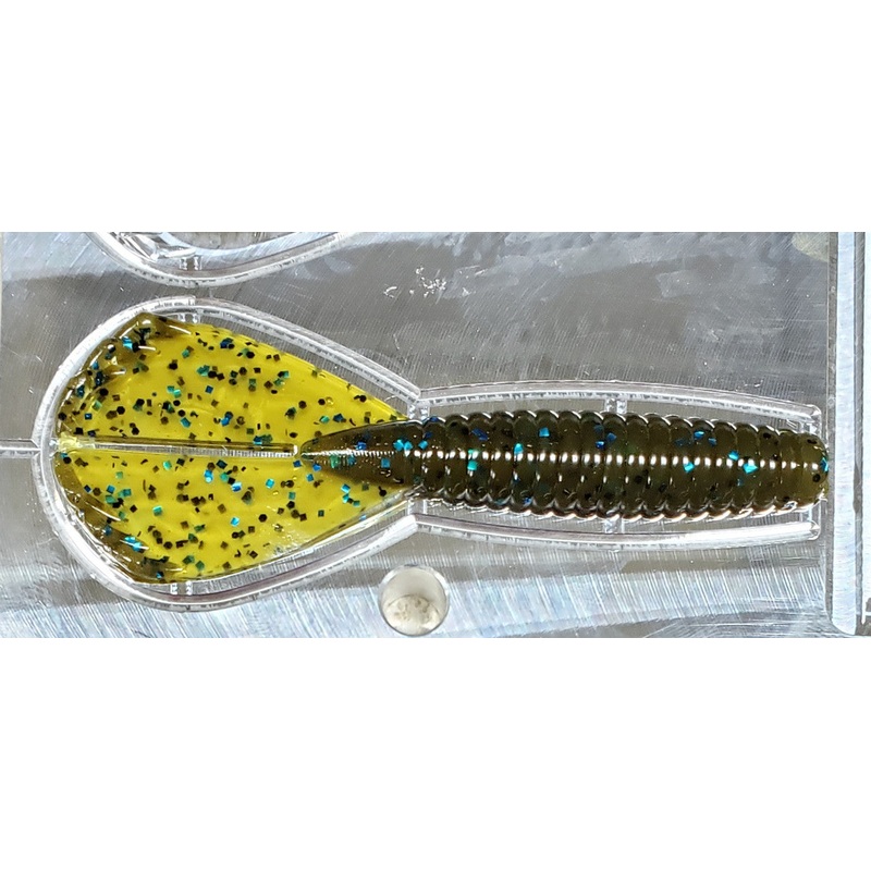The Phantom X-Grub Mold (3.5") has a 6-cavity configuration and is perfect for shooting solid colors and laminates. It measures 3.5" in the mold and is a standard in the industry for punching, chatter bait, and jig trailers.Please note that this is not the
