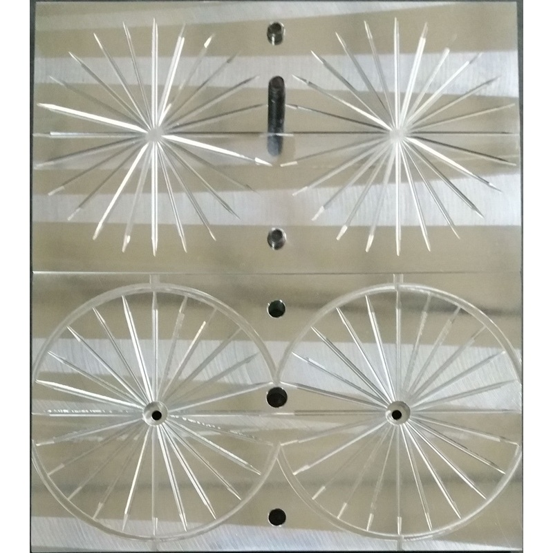 The 3.5" Skirt Bait Mold is an efficient 2-piece, 2-cavity injection mold. This mold allows for easy production of skirts that can be used directly on your grub or as a bait for catching big fish. No additional cutting or trimming is required as the mold p