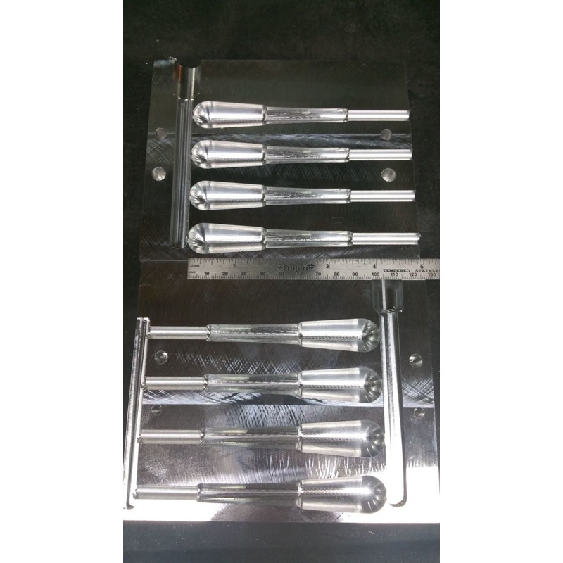 Increase production on the water with the 3.75" XL Tube Mold. This mold has a 0.70" head diameter and a .25" inside diameter. 4-cavities, are in the mold creating tubes with a larger profile. After injection, tail cutting is required.