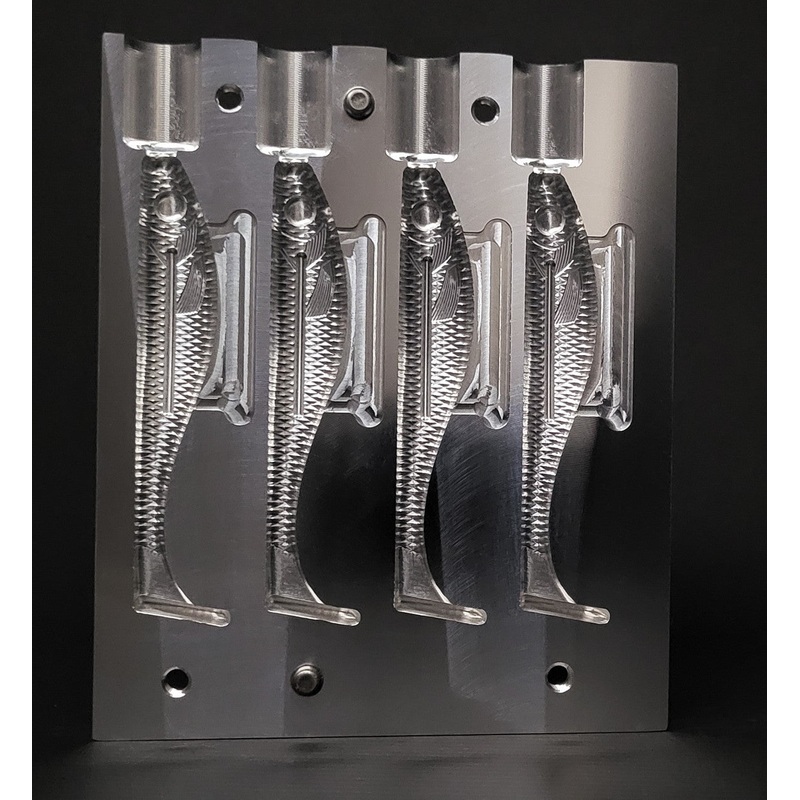 224B-4 4" Blood Line Swim Bait Mold (4 cavity)(4 CAVITY) WITH INDIVIDUAL TOP INJECTION PORTSTHIS MOLD ONLY MAKES THE SWIM BAITS AND REQUIRES THE ADDITIONAL INSERT MOLD (241CI-40).Placing something "sticky" or "tacky" in the Blood Line and Eye pockets help