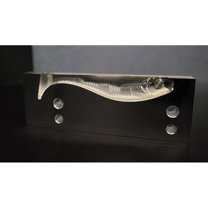 4" SOLID BODY Open Pour Mold6mm eye socket. Single cavity mold makes solid body baits ONLY.Bait measures 3.8" from nose to top of tail and 4.0" from nose to bottom of tail. Great swimming action.