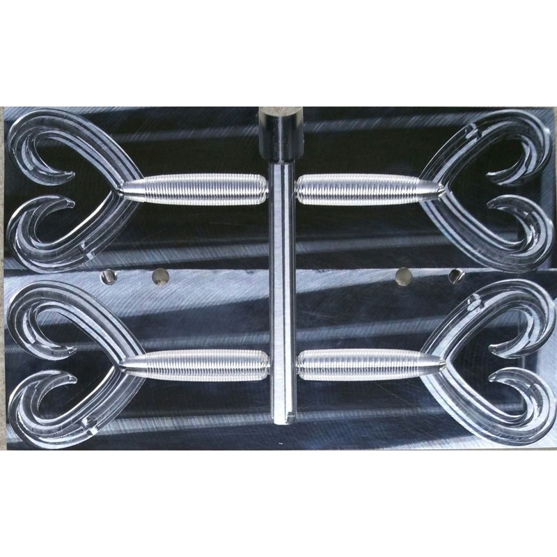 4 Cavity mold. 5" Heart Throb Hula grub.4 cavity, 2 piece injection mold. Larger than the traditional grub, it's the Magnum size. Be sure to match this up with the 2 cavity skirt mold.DetailsTail Width: 2.4"Total Length in mold: 3.73"