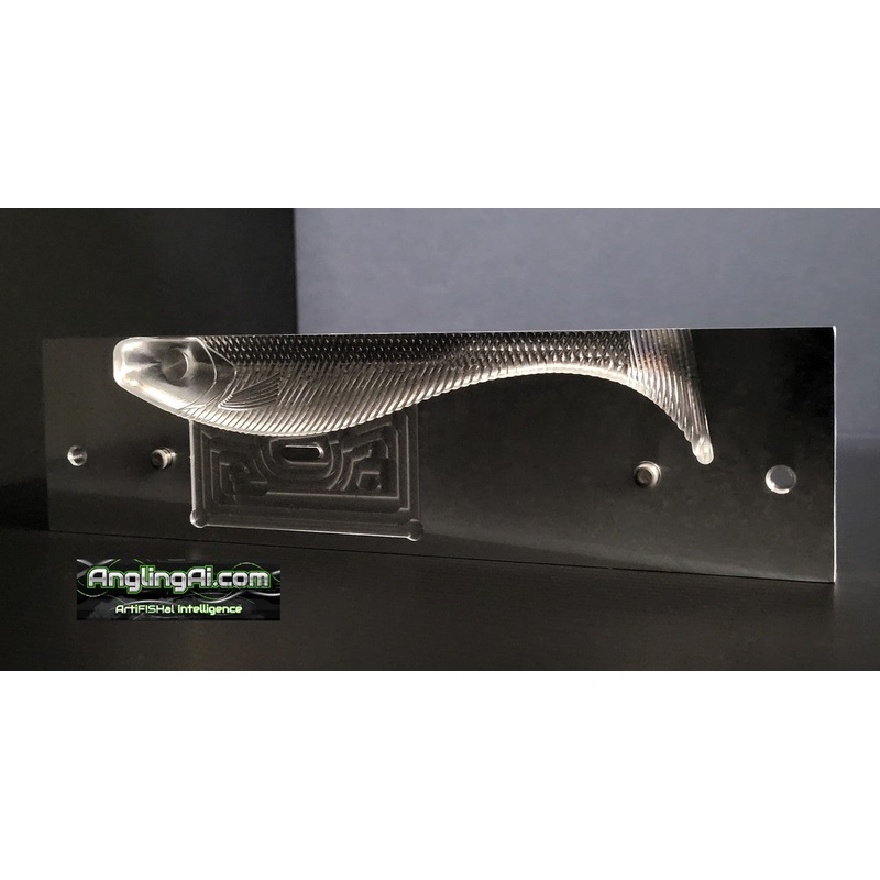 Incredible mold that is easy to pour for the beginner and allows a high range of creativity for the expert. Bait has a great swimming action and comes with a unique hook slot, allowing the use of swim bait hooks as well as jig heads if desired. Draw the attention of fishermen and fish when putting this mold to use. Eyes are 10mm.