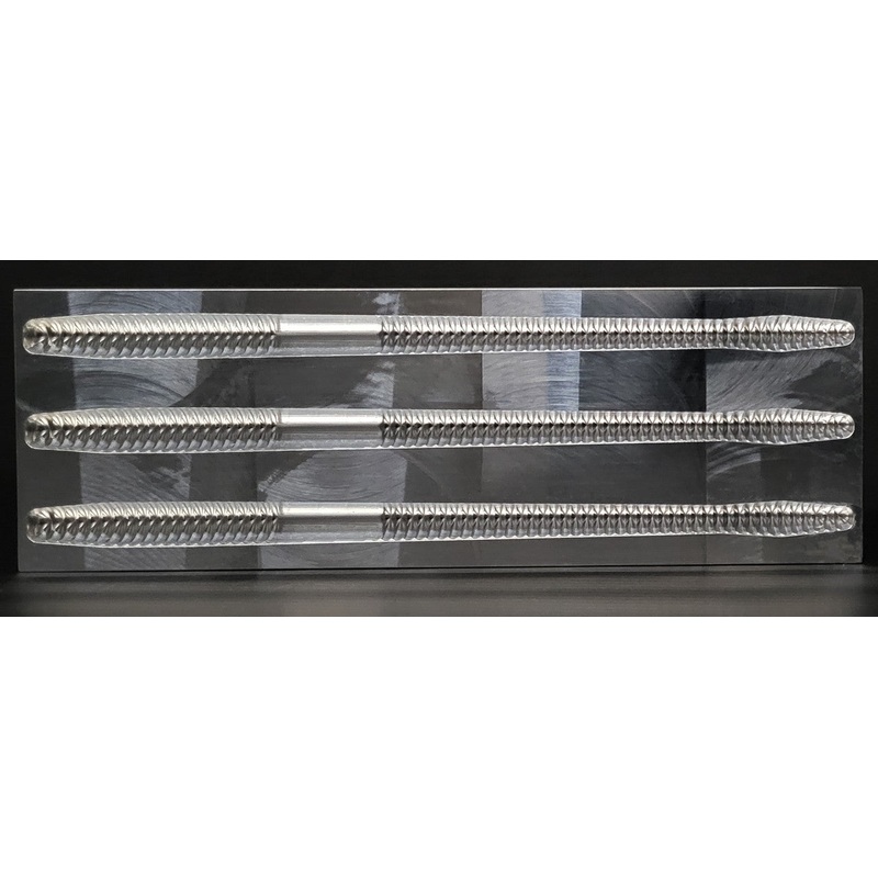 8.8″ MOJO Open Pour Worm Mold- The worm is 8.8″ long and .46″ wide at its widest point. Depth of the worm is .43″ deep. This is a large worm for Shaky Head, Carolina Rig, and Texas Rig style fishing. Some anglers may find the worm to offer more versatility as well. Mold depth allows for easy multiple-layer pours. Bait makers will be able to use a vast variety of techniques when pouring this mold.