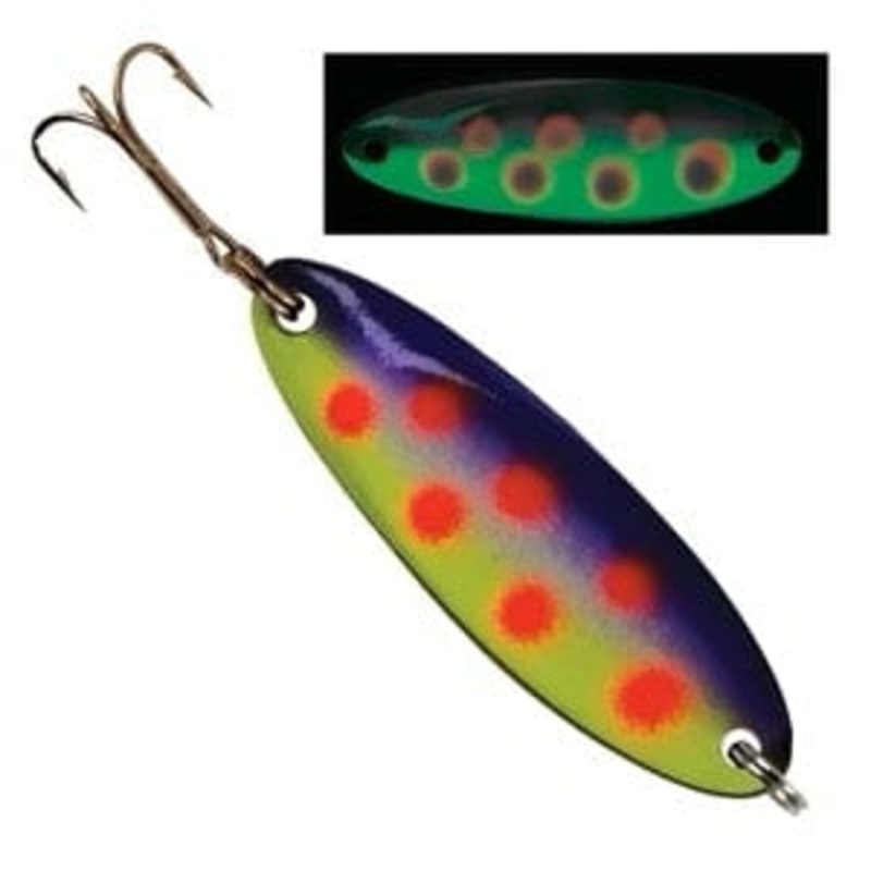 The legendary Acme Kastmaster combined with the innovative glow finishes from Moonshine Lures delivers a unique, fish-attracting luminescence to dark waters. When vertically fished this spoon provides wild action and comes in eight Moonshine Custom Glow colors.