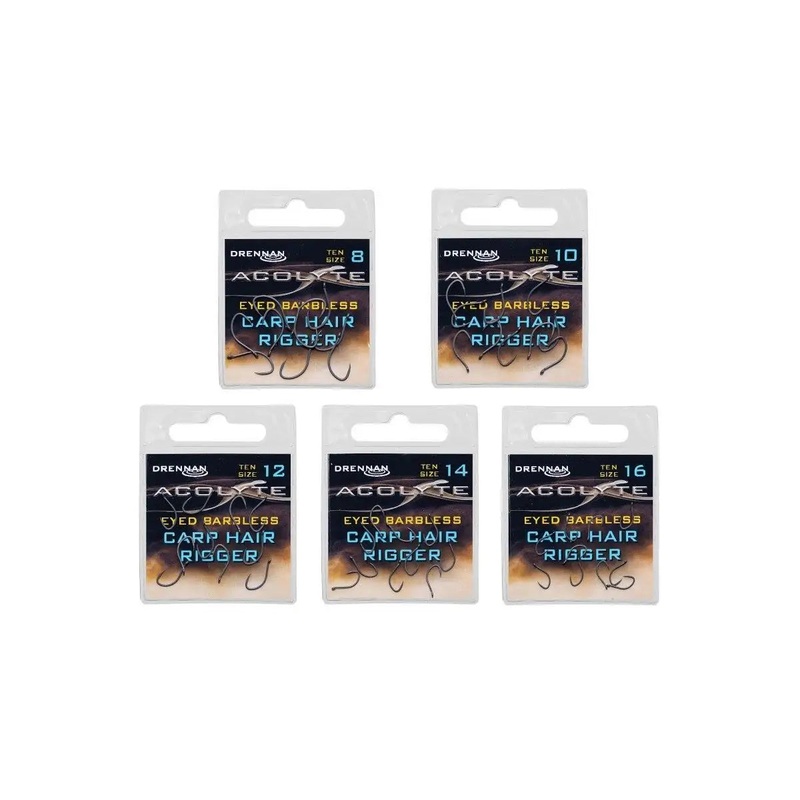 TheseAcolyte Carp Hair Riggershave been manufactured under improved systems resulting in stronger hooks with long life, durable needle points. The points curve back in from the special drop gape towards the shank and in combination with an angled eye, prod