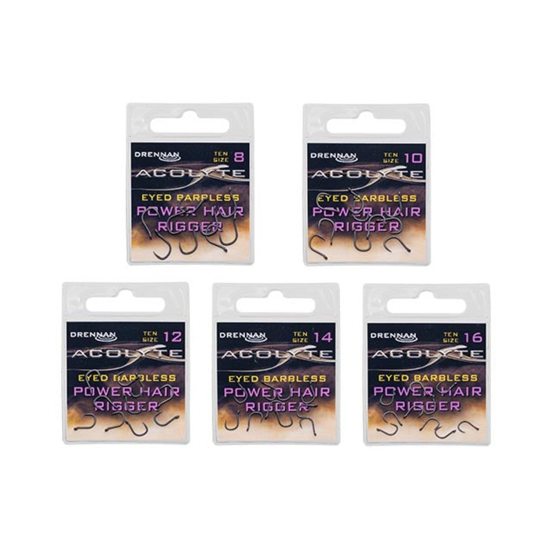 Acolyte Power Hair Riggershave an out-turned angled eye, a short shank and a wide gape, forming a strong, compact shape that’s ideal for hair rigged pellets, corn, small boilies or wafters. The slightly curved-in needle point is fine, ultra sharp and had exceptional long-life durability.