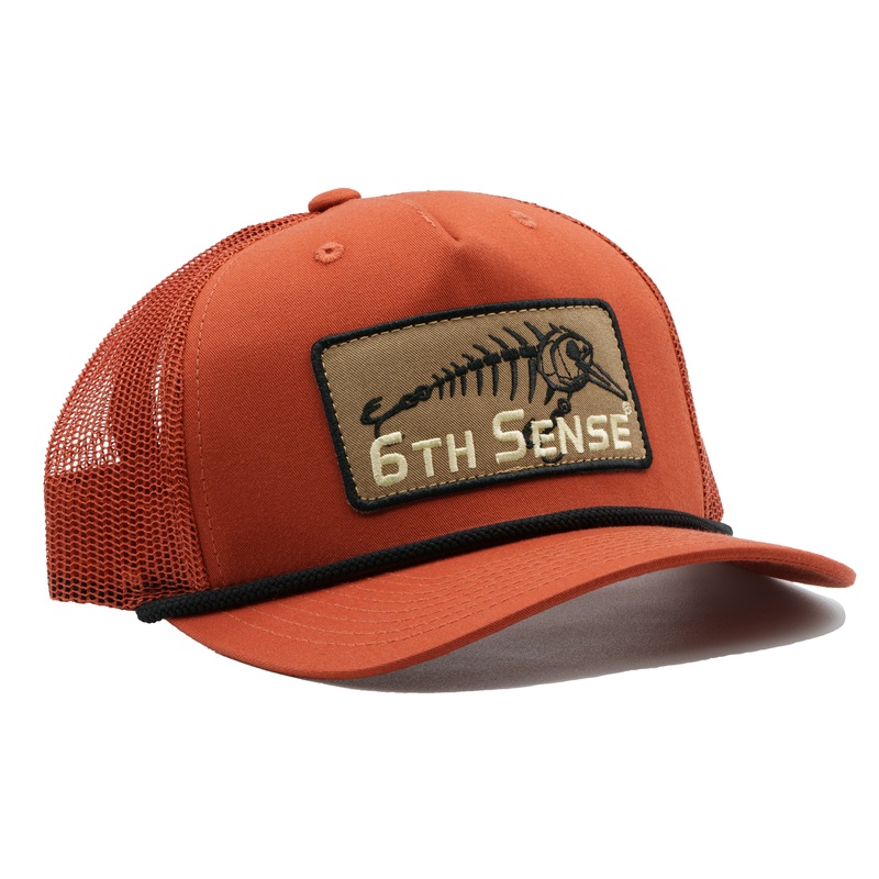 6th Sense Fishing Trucker Mesh 5-Panel HatSpecs:Crown:3-1/2"| Five Panel |Mid-ProfileFit:Structured Front|SoftMesh BackFabric:65% Polyester, 35% CottonBrim:Semi-Curved Bill Closure:Adjustable SnapBack