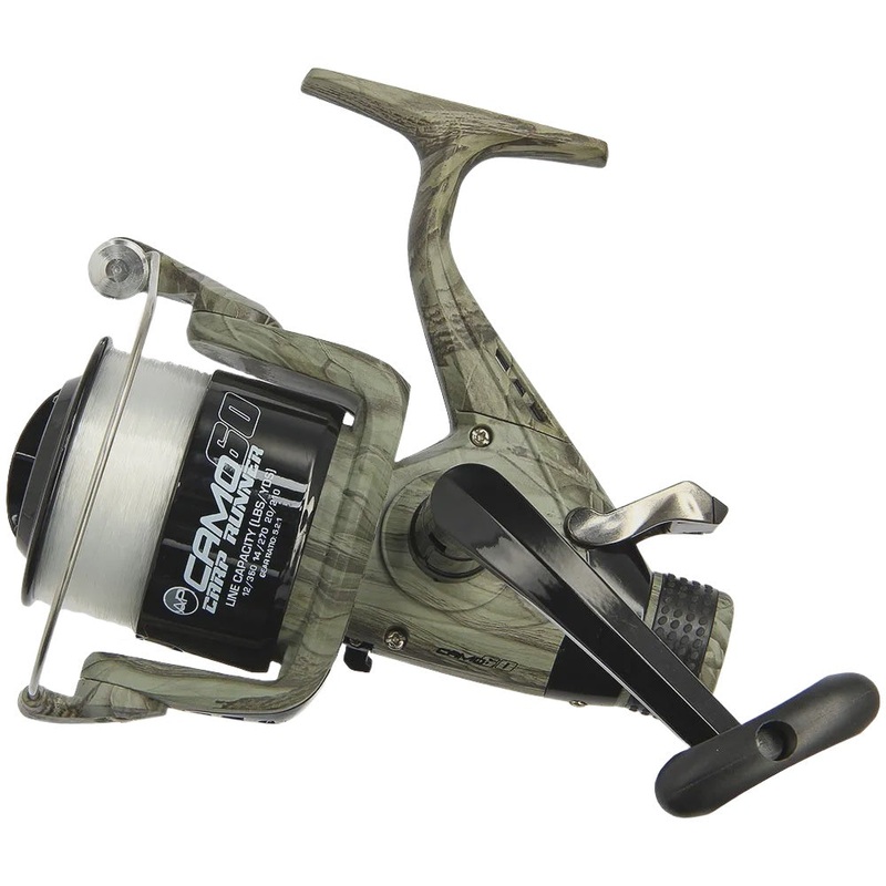 Angling Pursuits Camo 60 Carp Runner ReelA 3BB full camo carp runner reel, spooled with 12lb line.- One Touch Folding Handle- Instant Anti-reverse- High Strength Graphite Body- Power Line Roller- Computer Balanced Drive- Oversized Bail Arm- Multi Disk Drag