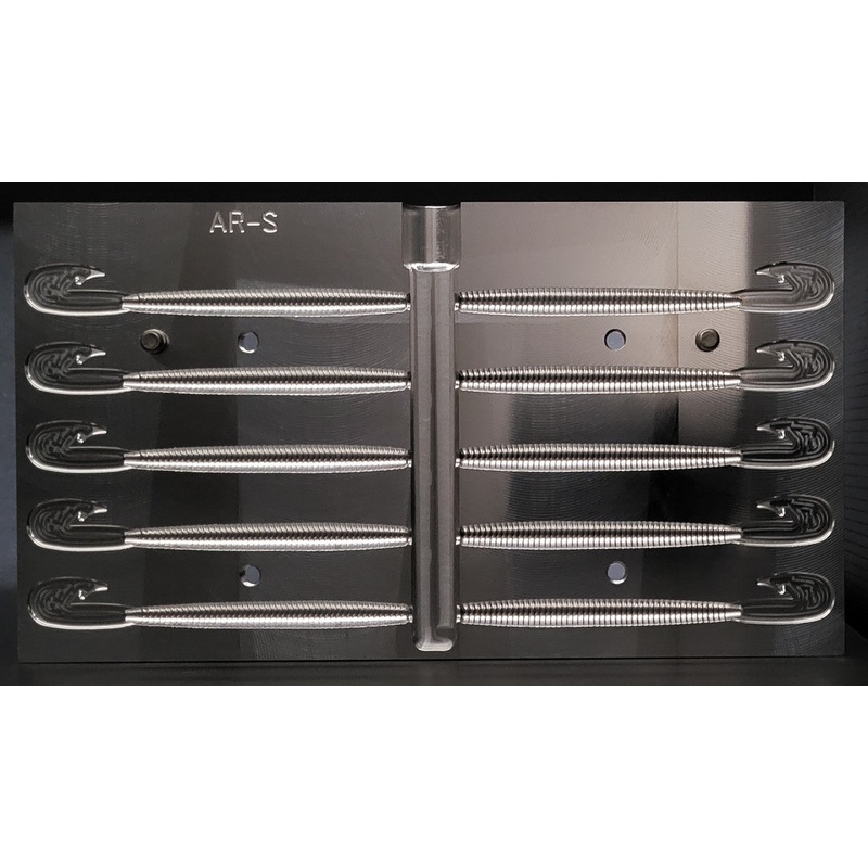 AR-S 4.15" Worm Mold (10-Cavity)- The 4.15" AR-S Worm Mold is another great design to add to your tackle box from the AR-S series. With a length of 4.15" in the mold and a width of .3" in the body and .21" at the head it can be fished using multiple techni