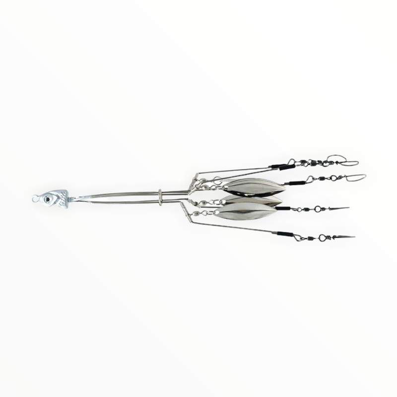 The new Sexy Rigs are now available and are gonna be your favorite rig! By now you should know we did not just throw together the same wimpy rigs you buy in most stores that break after 2 fish, Nahhh! 1/2 oz heads to even out your bait, heavy .045 wires and 120 lb swivel clasps to handle the big ones or even multiple at once ones. They also have a collapsible feature for storage so you don’t hook everything in the boat when running from spot to spot. Throw your favorite shad imitations on there and don’t depend on luck!