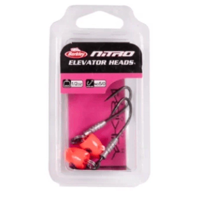 Berkley Nitro Elevator Heads Lumo PinkThe Nitro Elevator Heads from Berkley are a special type of jig head created to allow you to display your soft bait naturally while allowing it to sink to great depths. Berkley Elevator Jig Heads allow your soft bait t