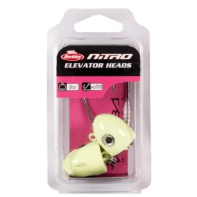 Berkley Nitro Elevator Heads LumoThe Nitro Elevator Heads from Berkley are a special type of jig head created to allow you to display your soft bait naturally while allowing it to sink to great depths. Berkley Elevator Jig Heads allow your soft bait to sin