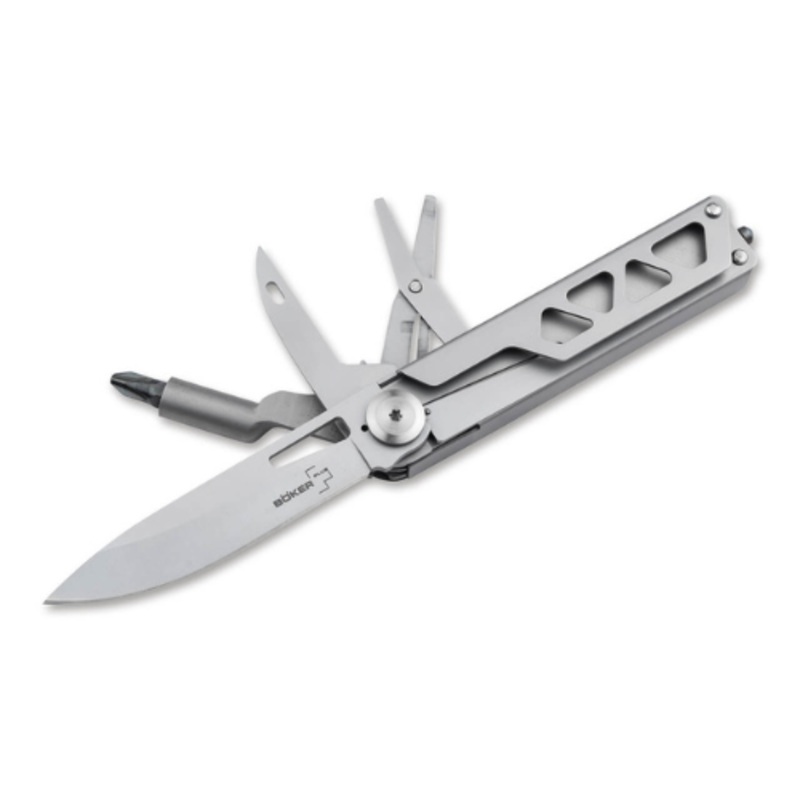 Competent, reliable, suitable for any pocket and therefore anything but half a portion – the Boker Plus Specialist Half-Tool expands the series of popular multifunctional tools with a slim version. The multitool has a 3Cr13 main blade and is backed up by a pair of scissors, a screwdriver with a universal bit holder, a pricker and a glass breaker. Thestainless–steelhandle of the multi-purpose tool fits securely in the hand, even for difficult work.