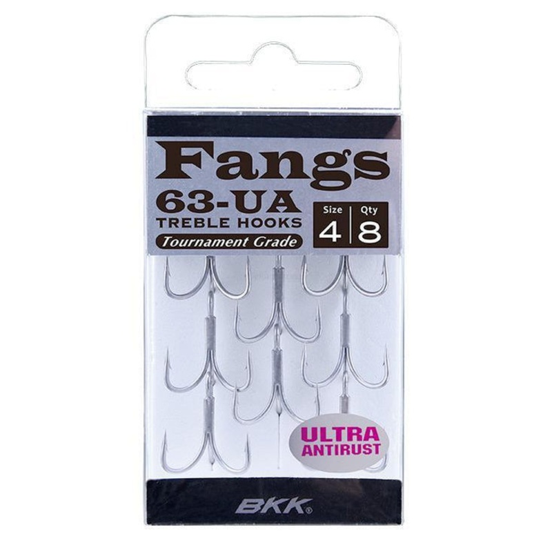 BKK Fangs 63-UA Treble HookBKK Fangs BT663-UA Ultra Anti-Rust 4X Treble Hooks are tournament-grade trebles, ideal for enhancing your lures.Featuring an ultra-antirust coating and exceptional sharpness, these hooks are reliable. Specifically engineered for