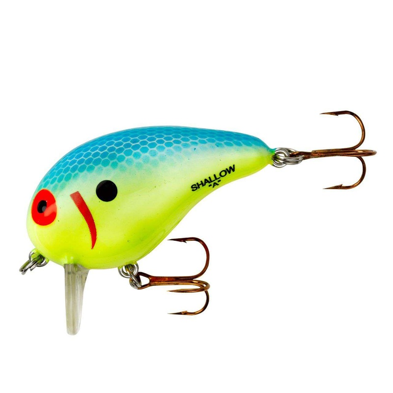 Bomber Shallow AThe Bomber Shallow A fishing lure will run where other crankbaits can't. All the Shallow A lure needs is a few inches of water to get the job done.BomberLengthWeightDepthHook SizeShallow A2"3/8oz0-1ft#6