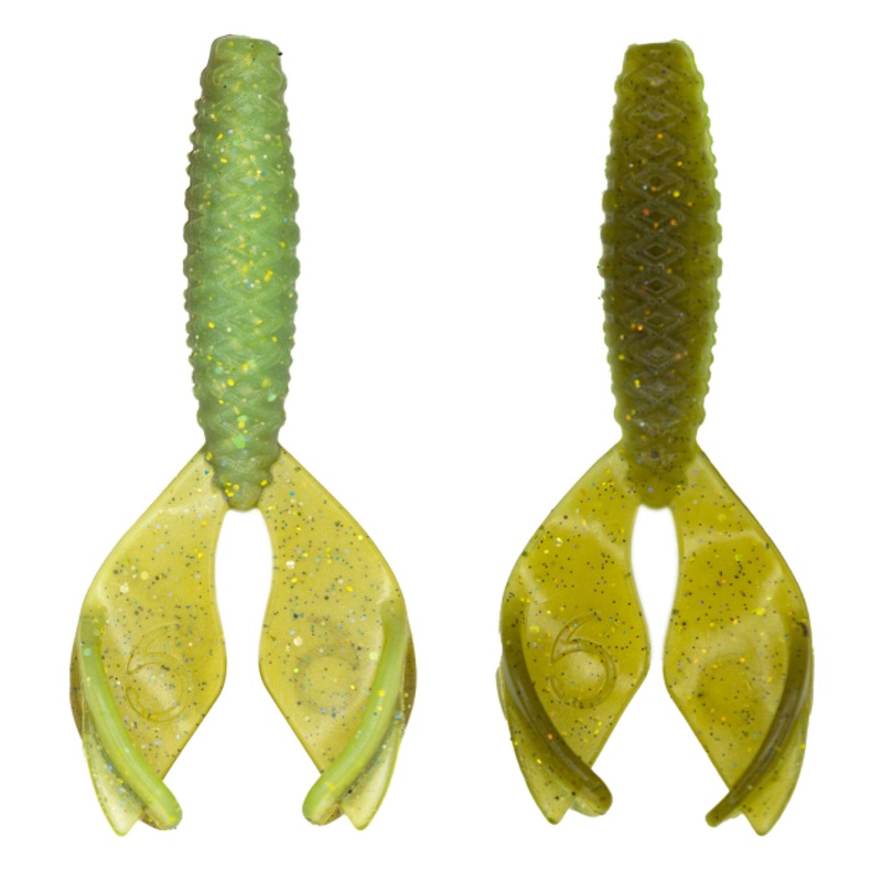 The 6th Sense Lure Lab is proud to release this smokin new soft plastic, The Bongo. Lets begin with the 3-Dimensional scale like body gives it an ultra-realistic presentation in the water. At 3.7 inches, the thinner body shape allows the wider claws to have more action by displacing more water, which will attract more fish. The Bongo was designed as a great trailer to give your jigs more action when flipping, hopping, or swimming, but it is also perfect for pitching a Texas-rig around thick cover or dragging a Carolina-rig offshore. The versatility of the Bongo is unmatched, flip it, use it as a jig trailer (swim jigs, hybrid jigs, Core-X Swinging Jigs, and bladed jigs). Tie one on and youll be telling your buddies, they sure were hitting the Bongo today.