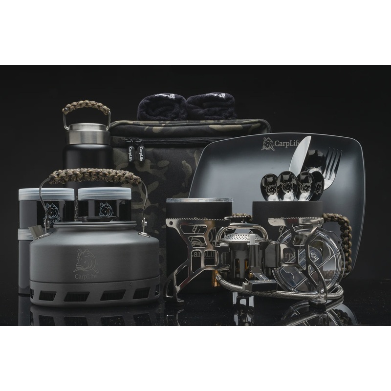 CarpLife Fully Loaded Eclipse Camo Brew Kit / Cookware BagIntroducing the CarpLife Eclipse Camo Brew Kit Bag your complete outdoor brewing solution.Includes:-4 food-grade pots-Black etched tea spoon-Microfibre hand towel-2 Thermal mugs with spoons-Thermal