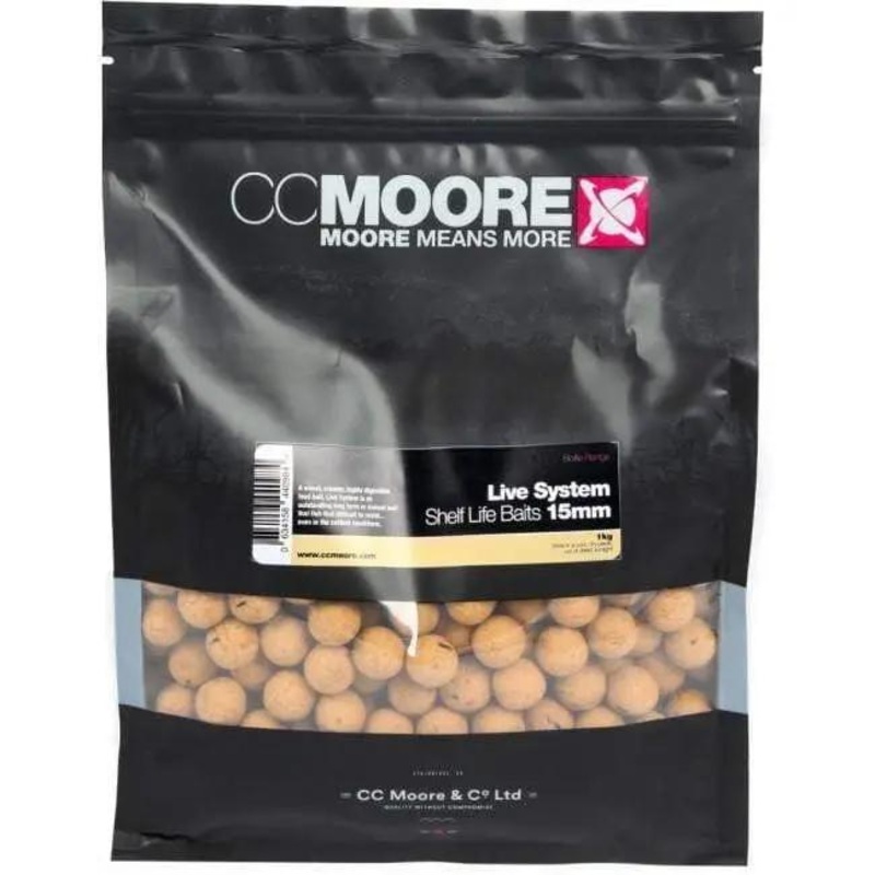 C C Moore Live System Shelflife Boilies 15MM 5KGThis superb, instantly attractive food bait has something of a cult following due to its ability to get a bite when literally all other boiled baits fail. It has a distinctively sweet, yeasty aroma and taste