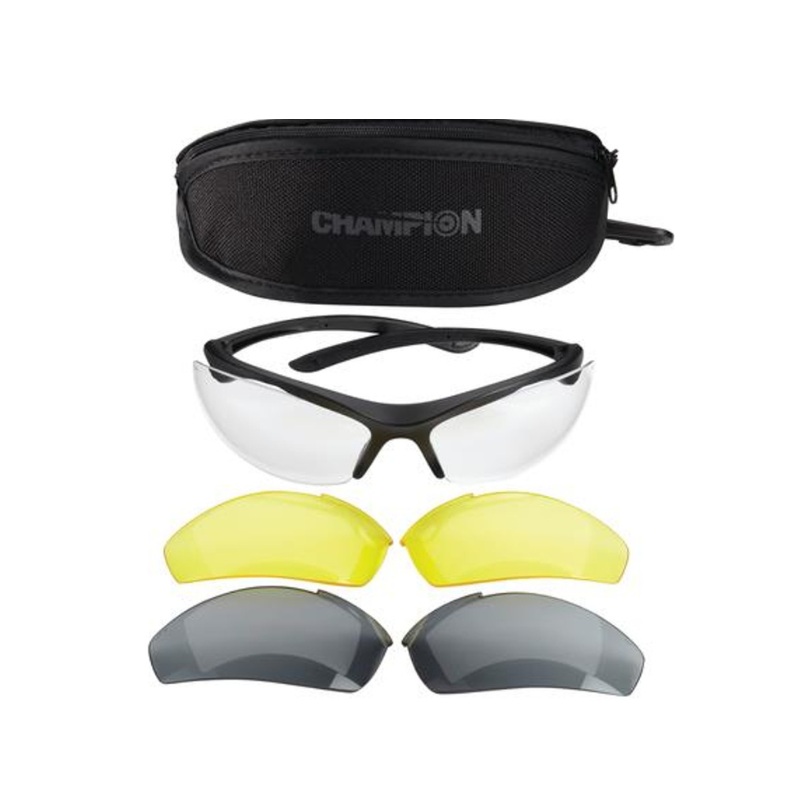 Safe, stylish and practical shooting glasses for youth and adults. The frames come in a variety of colors and feature sharp, image-enhancing lenses. Maximize your vision and protect your eyes next time youre at the range or in the fieldslip on a pair of Champion Shooting Glasses.