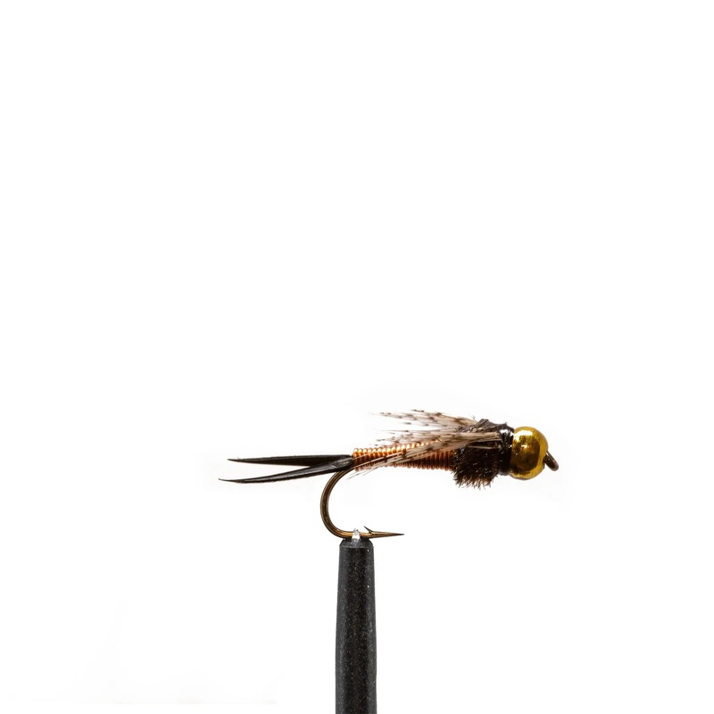 The Copper John is one of the most effective and widely used modern nymph patterns, known for its heavy weight, buggy profile, and ability to sink quickly into the strike zone. With a sleek copper wire-wrapped body, beadhead, and soft hackle or legs for ad