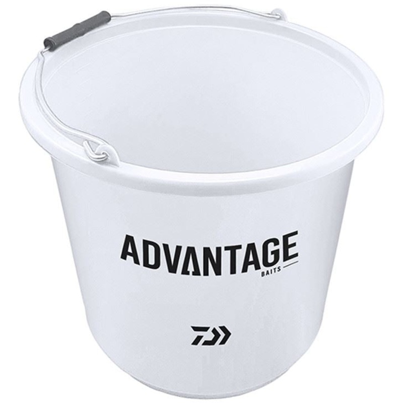 Daiwa Advantage Baits BucketDaiwa Advantage bait buckets, available in 12 and 18 litre size options. The larger 18 litre comes with a lid and is designed so the smaller 12 litre size can stack neatly inside. Both buckets have a strong metal carrying handle