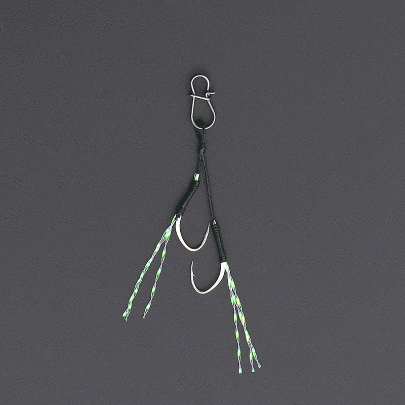 Tiny twin assists for ultralight metal jigs. Ideal for use on tiny metals without effecting the action but maintaining a fantastic hook up rate. The glitter fibres add extra attraction for more bites. Ideal as replacement assists for metals from 1g to 5g.