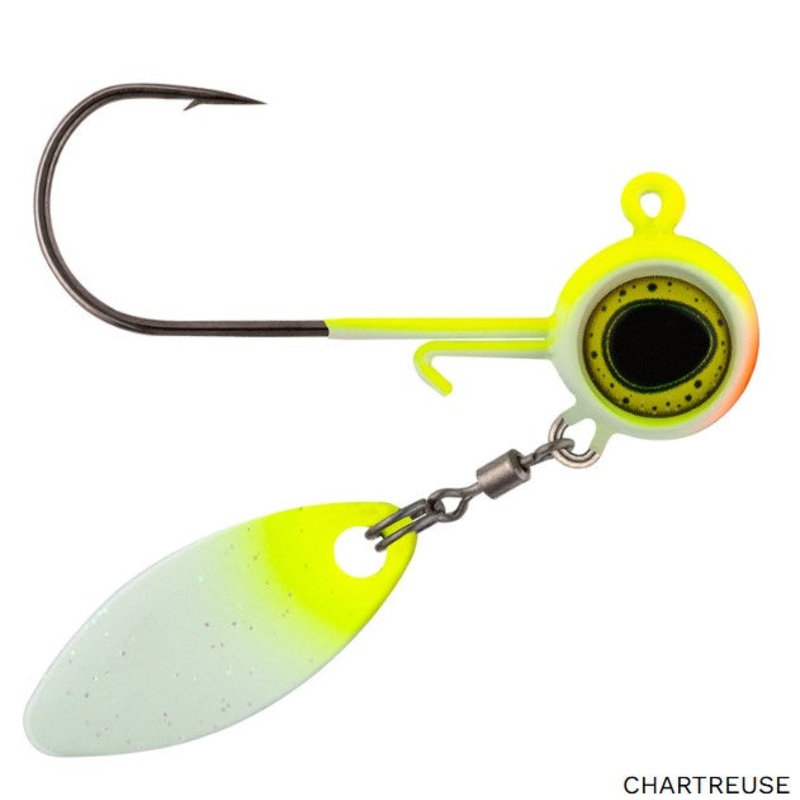 The NEW Deep-Vee Spin adds extra flash and vibration via the addition of a Willow Blade to the already legendary Deep-Vee jig. Sporting the keeled “DEEP-VEE” design that’sthicker on top and thin on bottom to track straight and fall fast. It also features large eyes that exude a “match-the-hatch” realism. Fished with live bait or plastics the Deep-Vees Barb-Wire keeper keeps your bait from going anywhere. Jigs come 2 per pack.