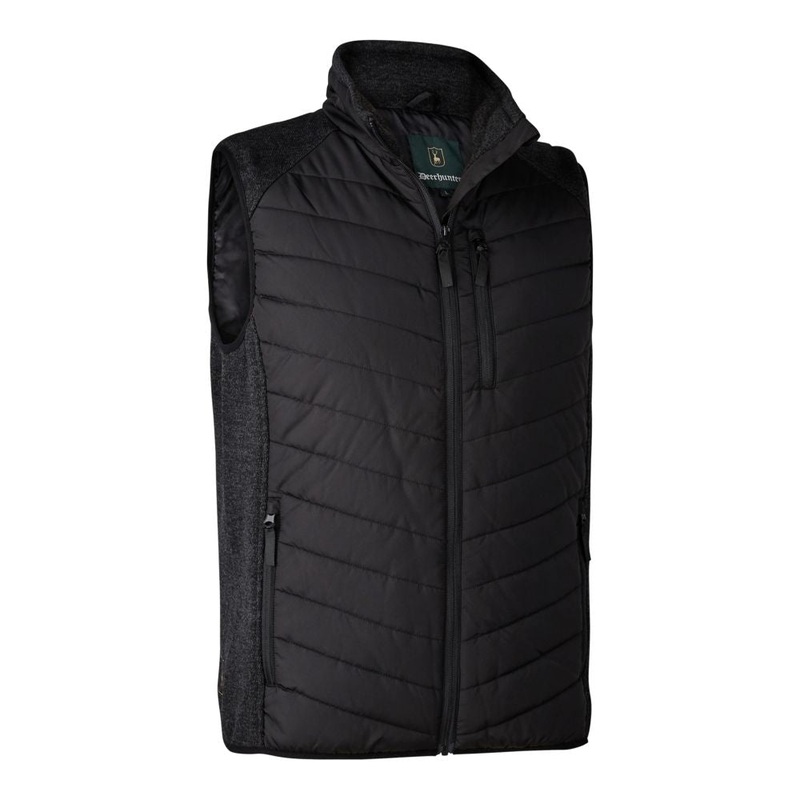 Vertical chest pocket with a concealed zipperTwo front pockets with concealed zippersKnit fabric at the side and shoulder parts for a better fit and comfortElastic edging tape at the armhole and bottom