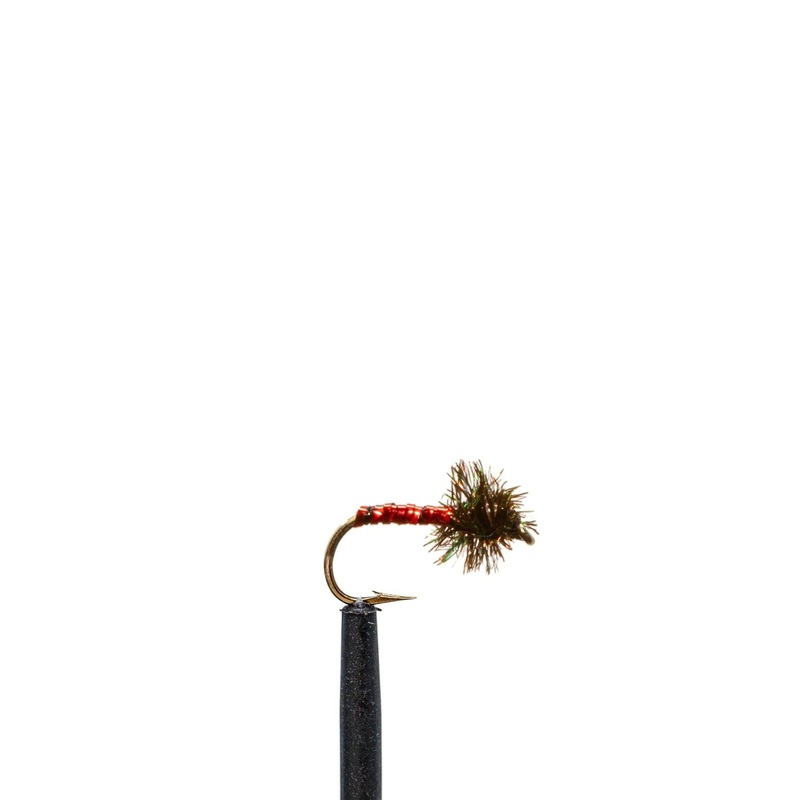 The Disco Midge Red is a vibrant and effective fly pattern designed to mimic midge larvae, a primary food source for trout, especially in clear and slow-moving waters. This fly stands out due to its bright red color and reflective materials, which mimic the natural iridescence of midge larvae. Ideal for use in technical waters where trout are selective, the Disco Midge should be fished with finesse. Employ small, precise casts and maintain a tight line for a subtle presentation, allowing the fly to drift naturally with the current.