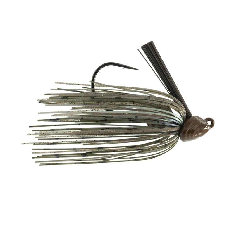 The Divine Hybrid Jig is a universal casting jig you should always have tied on, no matter where you are fishing. The head shape is a cross between a structure jig, a grass jig, and a football jigand allows you to use it in a variety of applications.
