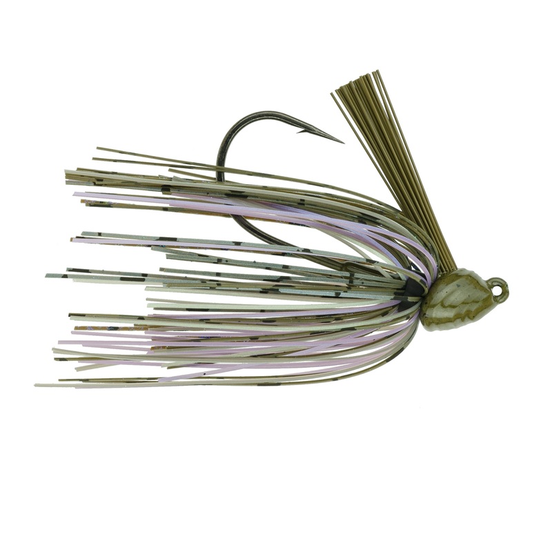 The Divine Hybrid Jig is a universal casting jig you should always have tied on, no matter where you are fishing. The head shape is a cross between a structure jig, a grass jig, and a football jigand allows you to use it in a variety of applications.