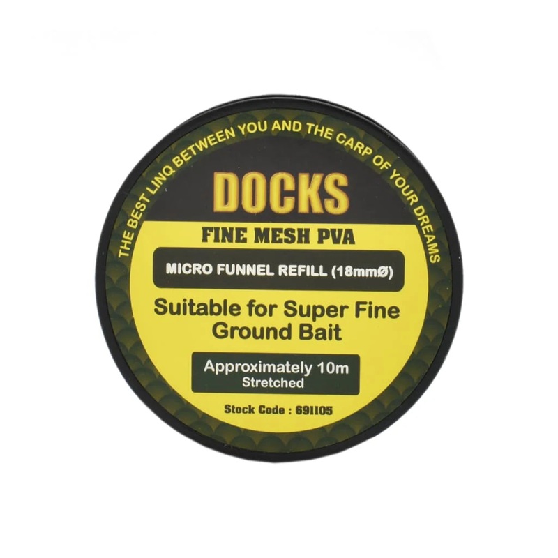 Micro Diameter mesh (18mm) ideally suited for when you want to introduce a small amount of groundbait around the hookbait. The narrow diameter of the PVA mesh makes this ideal for casting rigs because the small PVA bag doesnt create drag in the air. Mesh Refills supplied in 10m Spools.