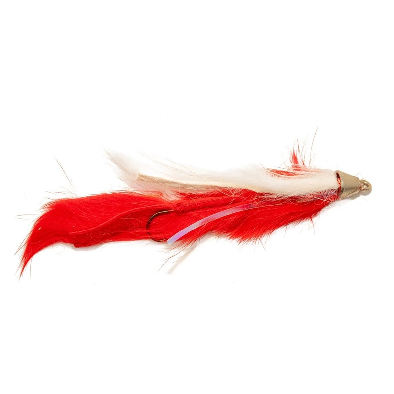 The Dolly Llama Red/White is a vibrant articulated streamer that excels in attracting attention from predatory fish, especially in murky waters or during low light conditions. Its striking red and white color contrast mimics wounded or distressed prey, mak