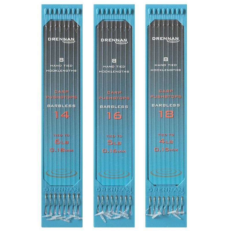 The Barbless Carp Hair Rig hooks used on these Carp Pushstop hook lengths have an acute upturned eye which is designed specifically to allow the hook sit straight on the hook link improving presentation and hooking ability. The length of the hair on these