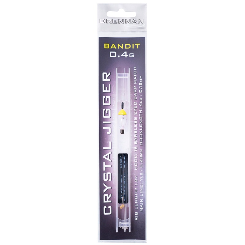 Drennan Crystal Jigger Pole Rigs, ready tied and available with eithera Hooker or Bandit for securing a hookbait. A rig that's grown in popularity to become one of the most effective ways of targeting commercial carp in the summer months.FeaturesAvailable