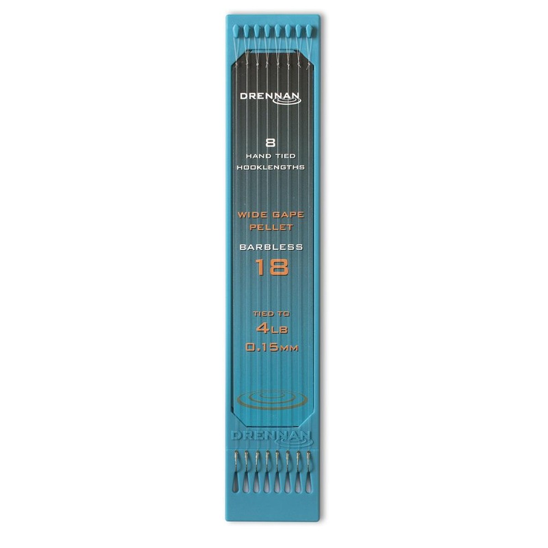 Barbless Wide Gape Pellet Hooks to Nylon are perfect for commercial fisheries when using soft pellet. This hook is wide in the gape and long in the point to improve the hooking properties and is forged for extra strength.