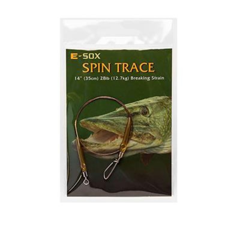 The E-Sox Revolver Spin Trace is 35cm (14) and ideal for lighter lure fishing for pike, zander and perch.Each trace has been perfectly constructed by hand in our own factories and feature 7 Strand Pike Wire and Slim Crimps for secure connection to a size 1