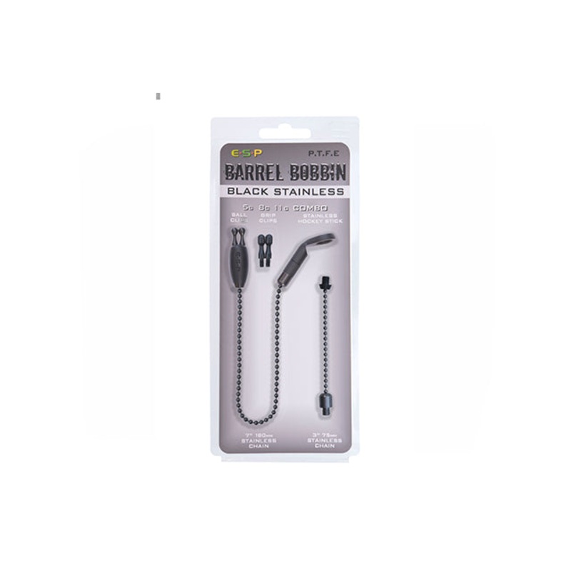 The interchangeable line clips simply allow the bobbin to be fished running on the line with the ball clips or gripping the line ‘Elstow style’ with the grip clips. The 3″ ball chain is best suited to this setup, with the bobbin fished on a short drop near the bite alarm.