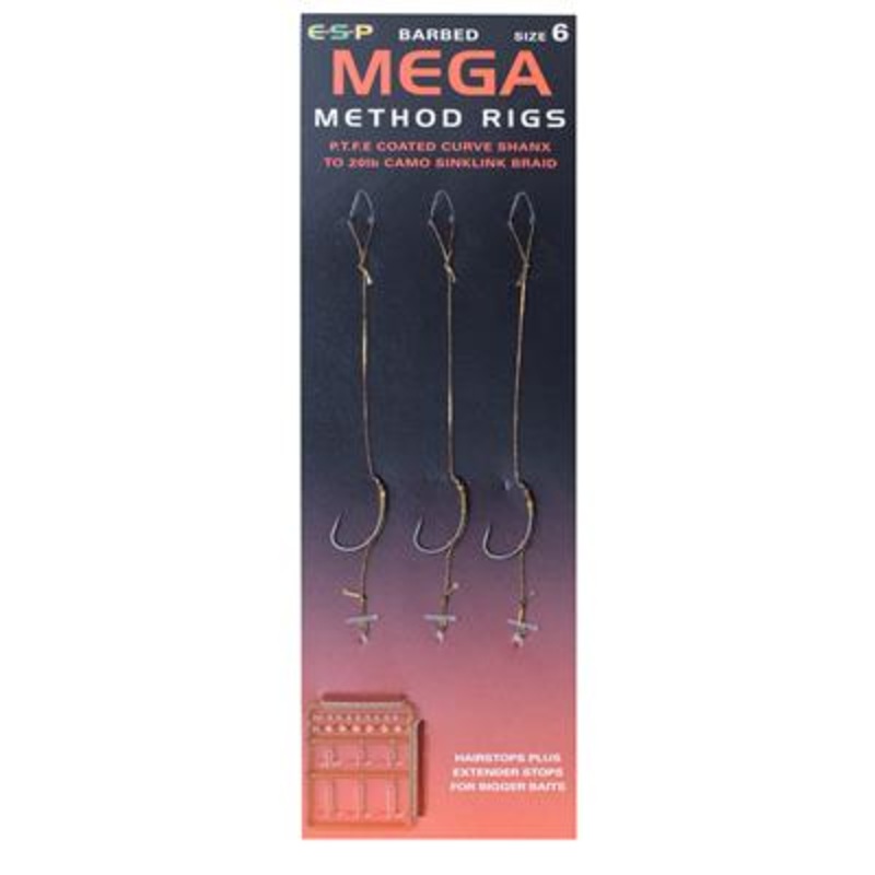 Mega Method Rigs are short braided hooklinks tied to Curve-Shanx hooks. Perfect for using with Mega Method feeders & PVA bags