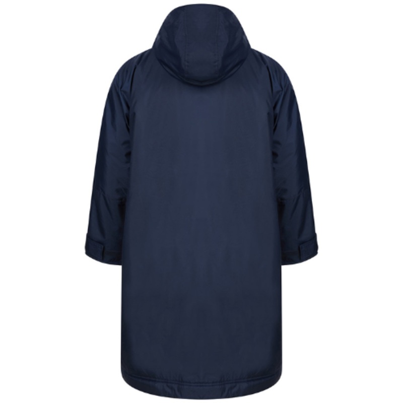 The ultimate team robe is made in a water resistant fabric with a cosy sherpa fleece lining and three-piece hood. The roomy fit with double-ended full front zip allows wearers to keep warm and get changed underneath the robe. Perfect for wild swimming or wearing on team sidelines. Zipped pockets with fleece lining keep hands warm with multiple inner pockets for keeping belongings safe. Topped off with a large embroidery zip for access to directly decorate.