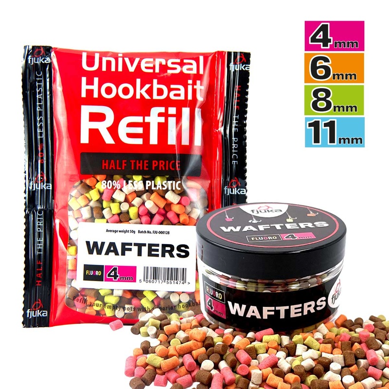 The HOOKABLE WAFTER:hook-direct, spike-mount, hair-rig, or band.BREAK to make SMALLER WAFTERSthat hook directly.SINGLE OUTBIG FISH:small-fish-resistant texture PLUS sustained release of Sensate Fish Accelerant.NEUTRAL BUOYANCY EASILY SUCKED UP: by carp, F1