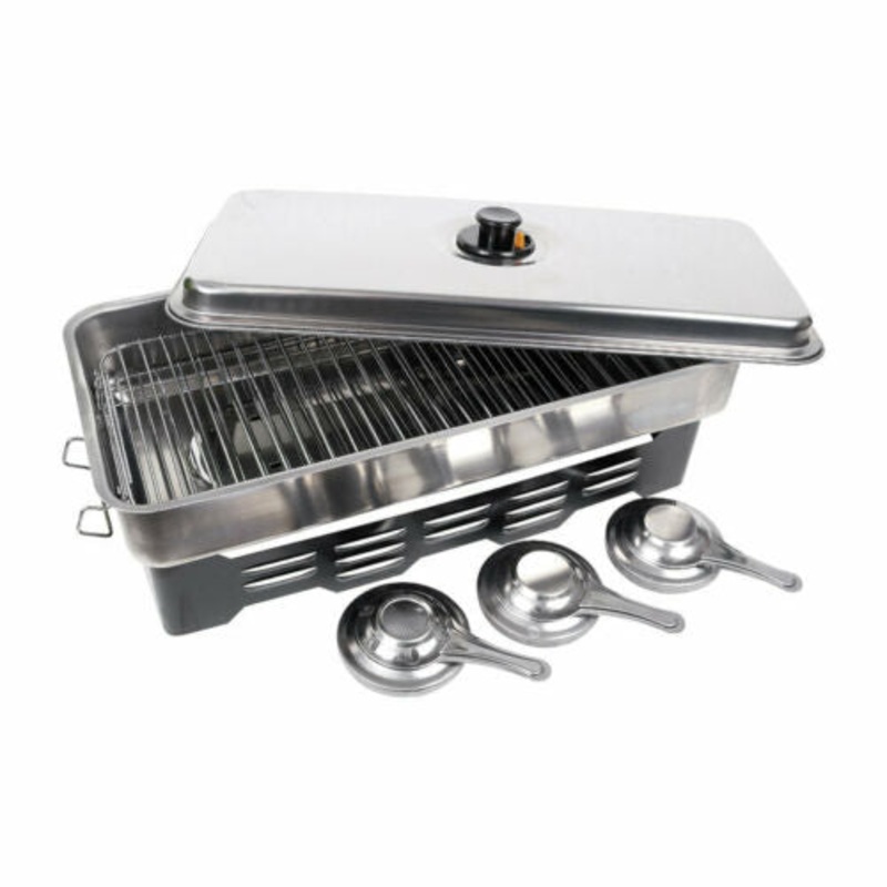 For fish and meat. Smoking cooks and preserves food. Three burners.