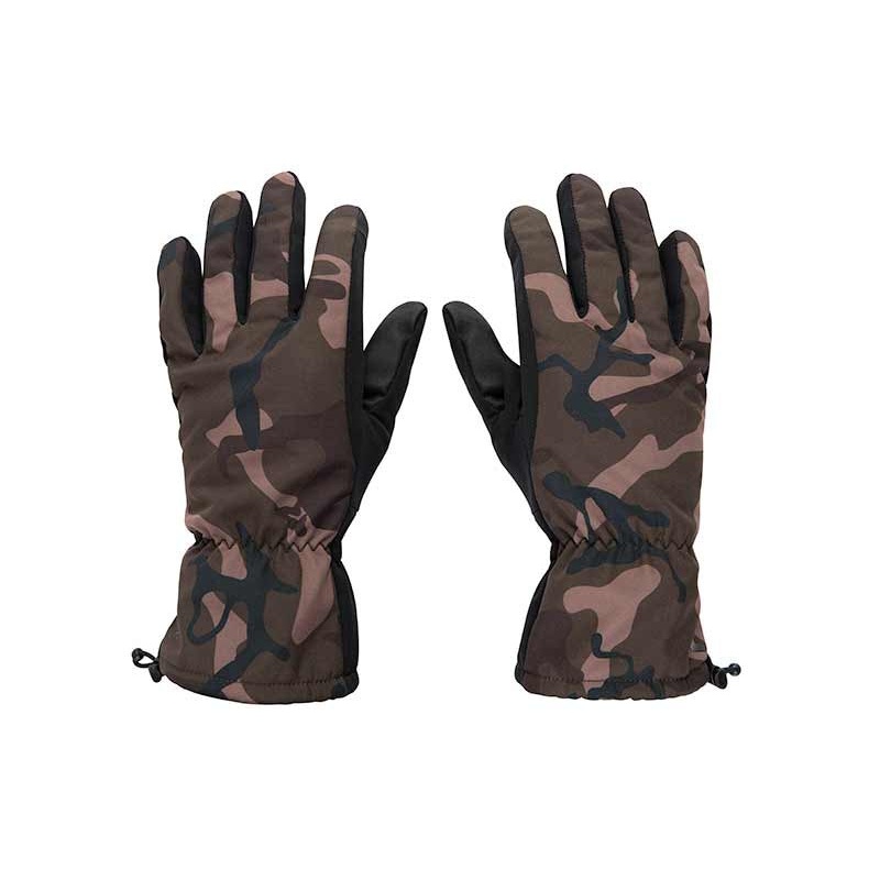 Fox Camo Gloves-Shower resistant Fox camo gloves-Wind blocking internal membrane-Soft, comfortable, thermal lining-Touchscreen compatible-Reinforced palm & thumb grips-Elasticated & bungee adjustable wrist-Outer - 97% polyester, 3% elastane-Lining - 100% p