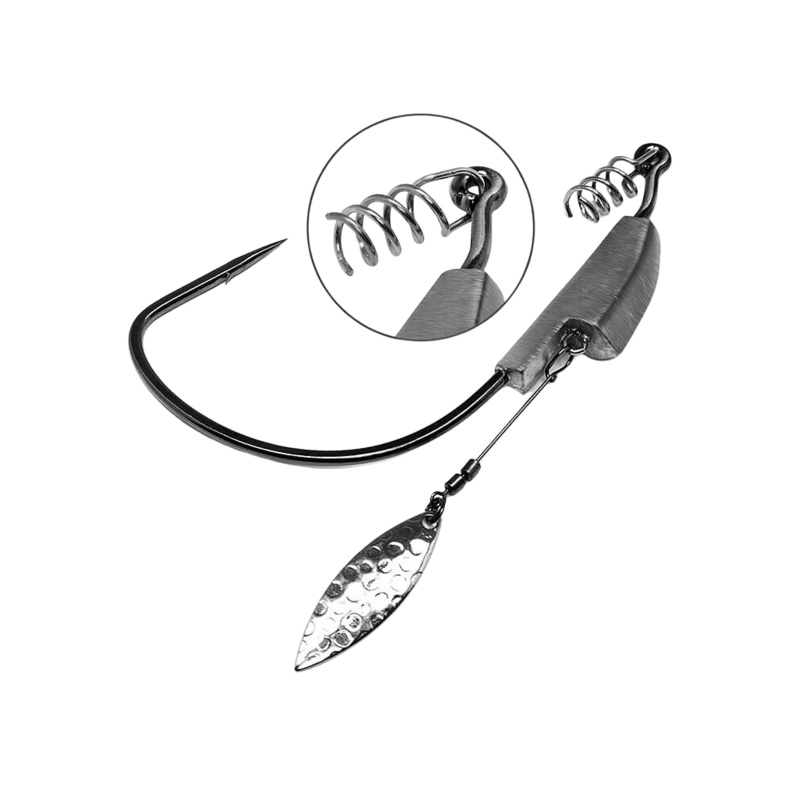 The new Spring Lock Spinner from Gamakatsu makes your favorite swimbaits and other soft plastics even more effective by adding flash and vibration to attract fish from even greater distances. The revolutionary design features two retaining wires wound in parallel, making rigging simple and providing even more holding power, so baits wont slip no matter how hard you fish. The new rigging system has innovative features that draw strikes from pressured fish and is built on a premium 2x strong hook to handle the biggest predators. Combining the 28-degree hook eye and premium spring lock allows you to keep your bait in place, so it runs true every cast.