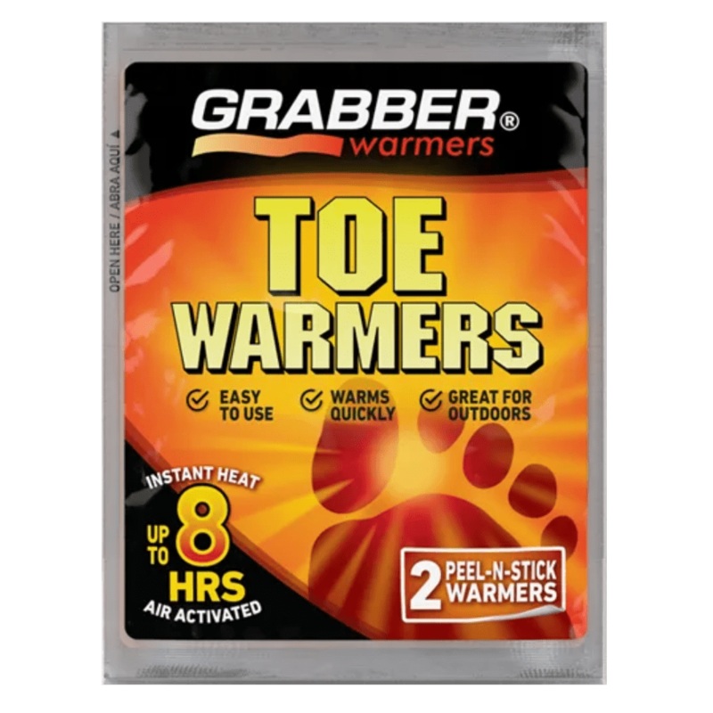 Grabber Toe Warmersare single-use, air-activated heat packs that provide up to 8 hours of continuous warmth for the toes.ApplicationsOutdoor DiningShoppingTailgating at EventsOutdoor Sporting EventsHunting & FishingCampingWorking in The YardTaking Your Pet