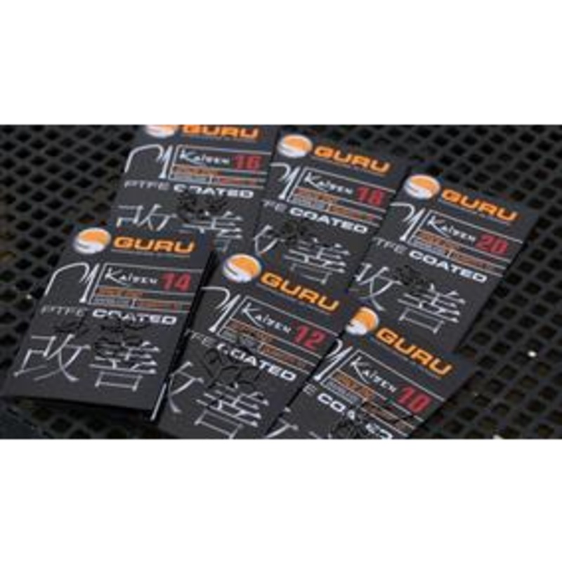 Guru Kaizen HookThe Guru Kaizen Hooks have been designed using some of the latest improvements in technology to help improve both the efficiency and the safety of the fish.Thanks to the hooks PTFE coating and barbless design, anglers can confidently use th